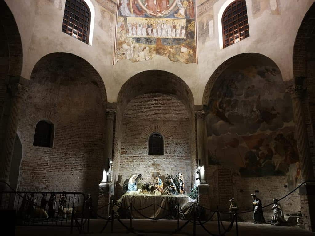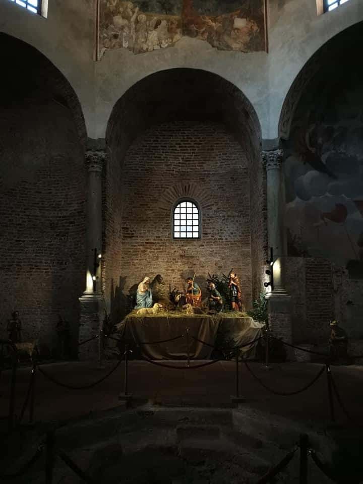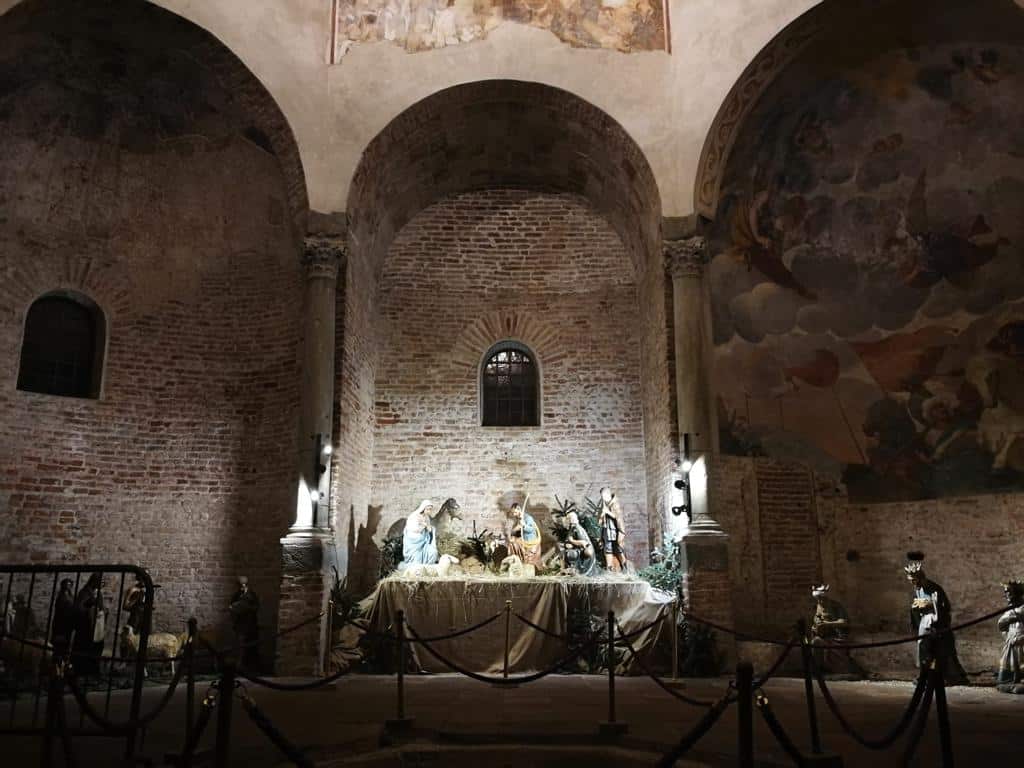 Da anni posizionato nel quadriportico, il Presepe della Cattedrale quest’anno è stato allestito all’interno del Battistero, occupando tre nicchie del suggestivo edificio, il più antico della città. Nell’andito in corrispondenza dell’imponente Giudizio Universale, affrescato da Giovanni De Campo alla metà del XV secolo, è stata ricreata la scena della Natività, con la Vergine, san Giuseppe, gli animali e i pastori con le loro greggi e, al centro, Gesù Bambino, che sarà collocato la sera del 24 dicembre, come tradizione. Nella nicchia di sinistra sono stati inseriti alcuni personaggi della vita quotidiana, mentre in quella a destra della scena centrale sono posizionati i Re Magi, in cammino verso Betlemme. Il Presepe è visitabile dal lunedì al venerdì dalle 7 alle 12 e dalle 15 alle 18, mentre la domenica ed i giorni festivi è aperto dalle 9 alle 13 e dalle 15 alle 17.