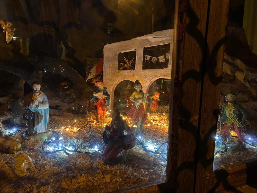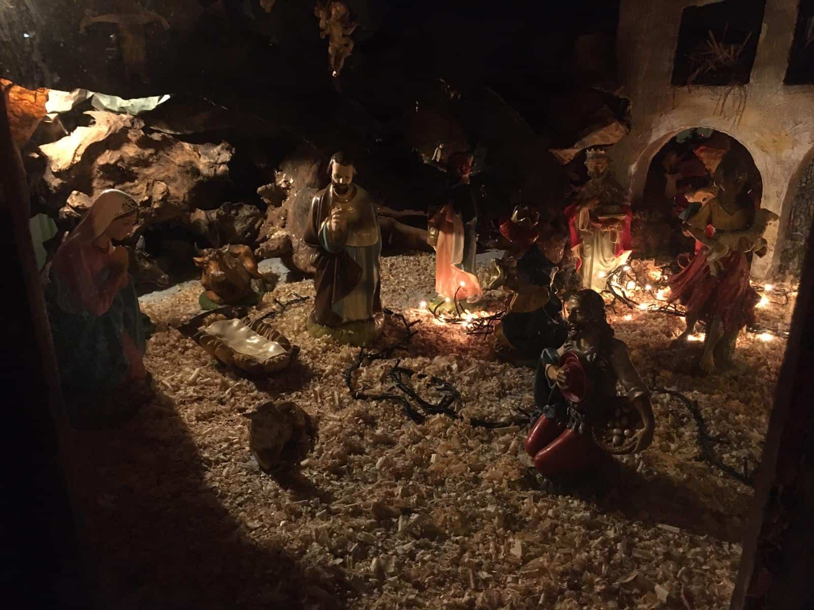 Sempre aperto e visibile alla città, invece, il presepe allestito dalla Confraternita di San Giovanni Battista Decollato ad fontes all’interno della Cappella dei Caduti, in affaccio sulla piazzetta antistante la chiesa. Tradizionalmente nella prima cappella di sinistra del suggestivo edificio barocco, quest’anno la Natività è stata ricreata all’interno della cappella esterna, a cui ci si deve affacciare per poterlo ammirare. Anche per questa rappresentazione è stata scelta la modalità tradizionale, arricchita da un gioco di luci per renderlo meglio visibile anche da lontano.