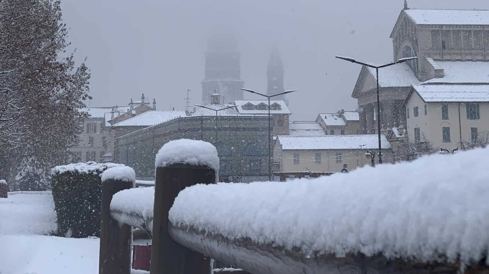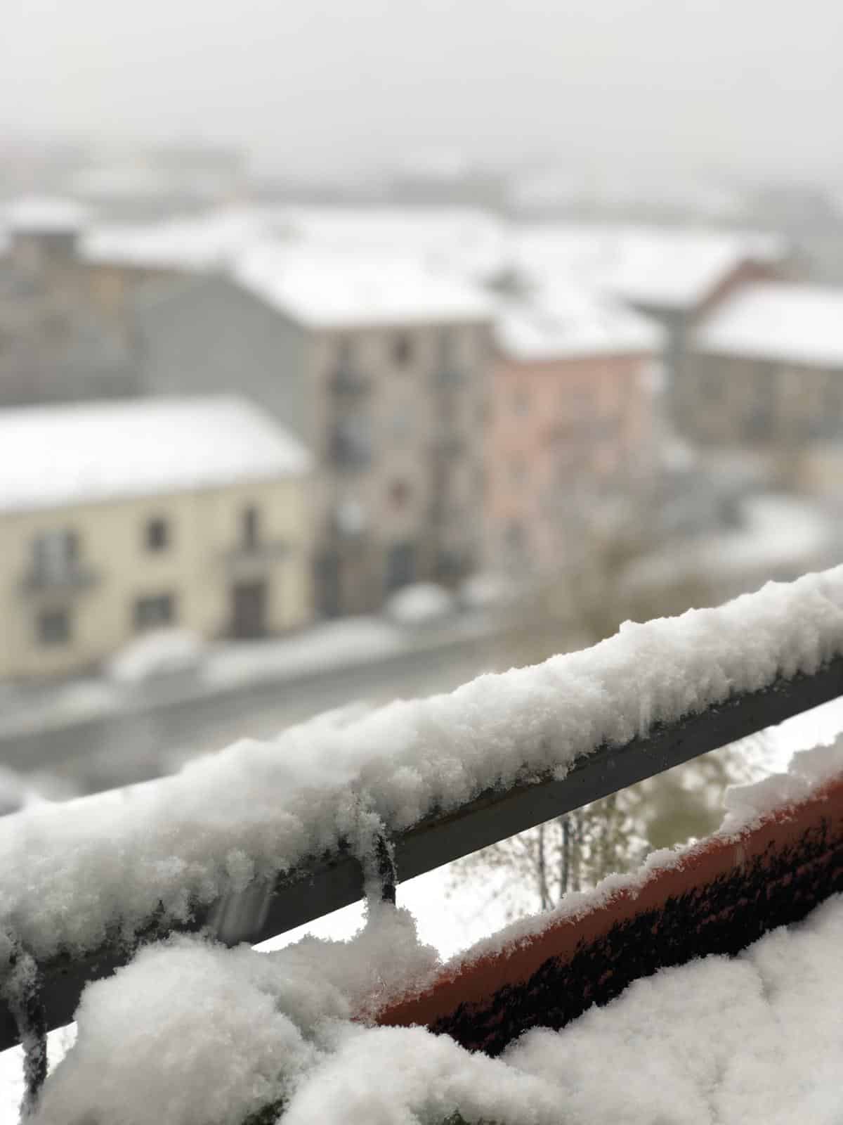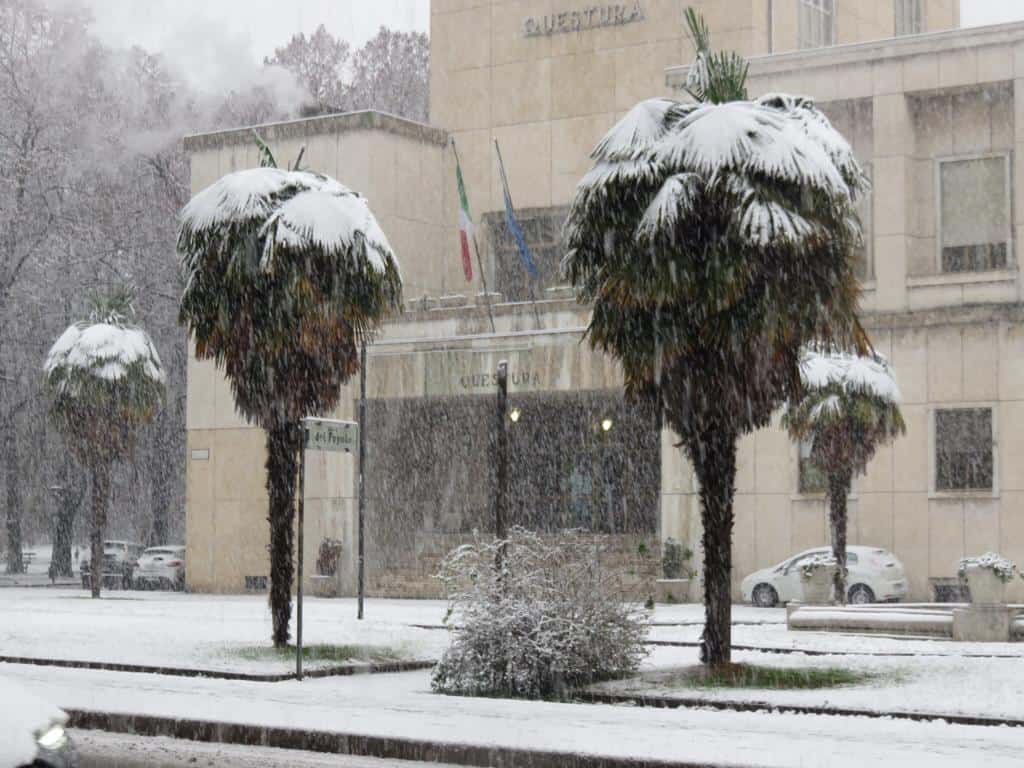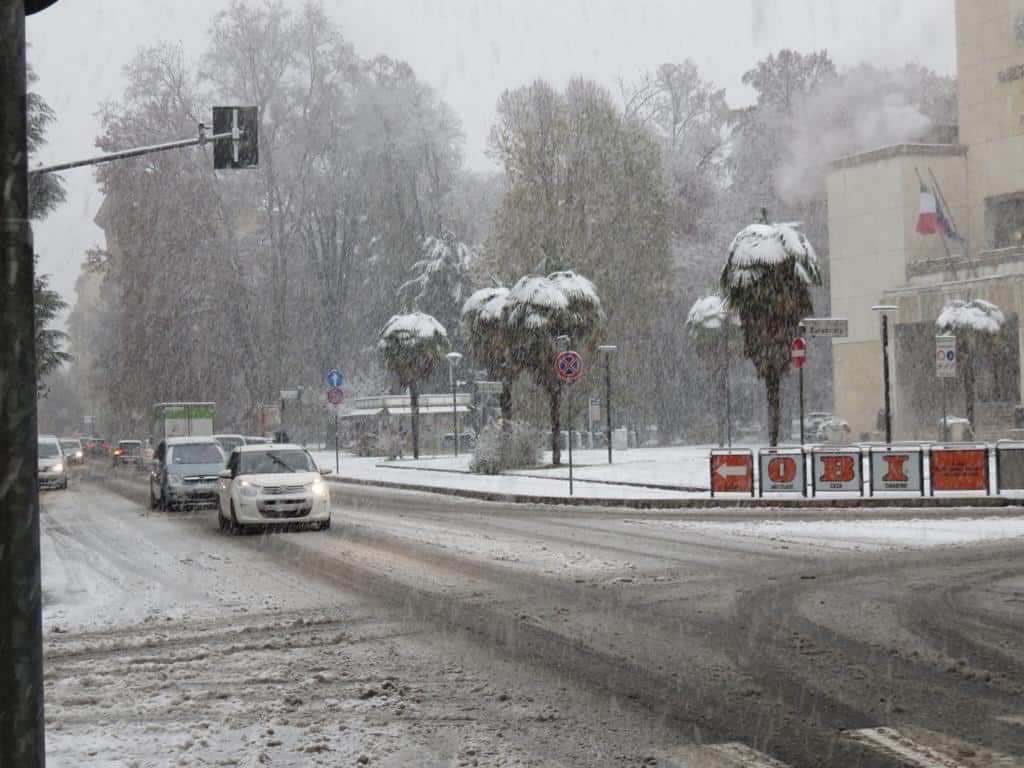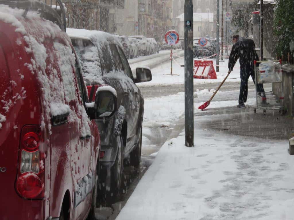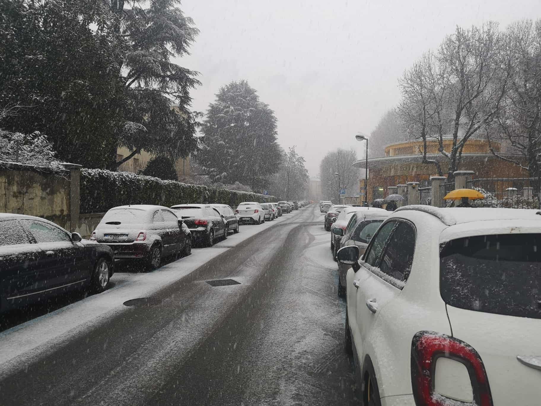 Oltre 10 centimentri di neve sono già caduti e le precipotazioni nevose dovrebbero andare avanti fino alle 15. In serata sono attese le piogge che scioglieranno parte della neve caduta.