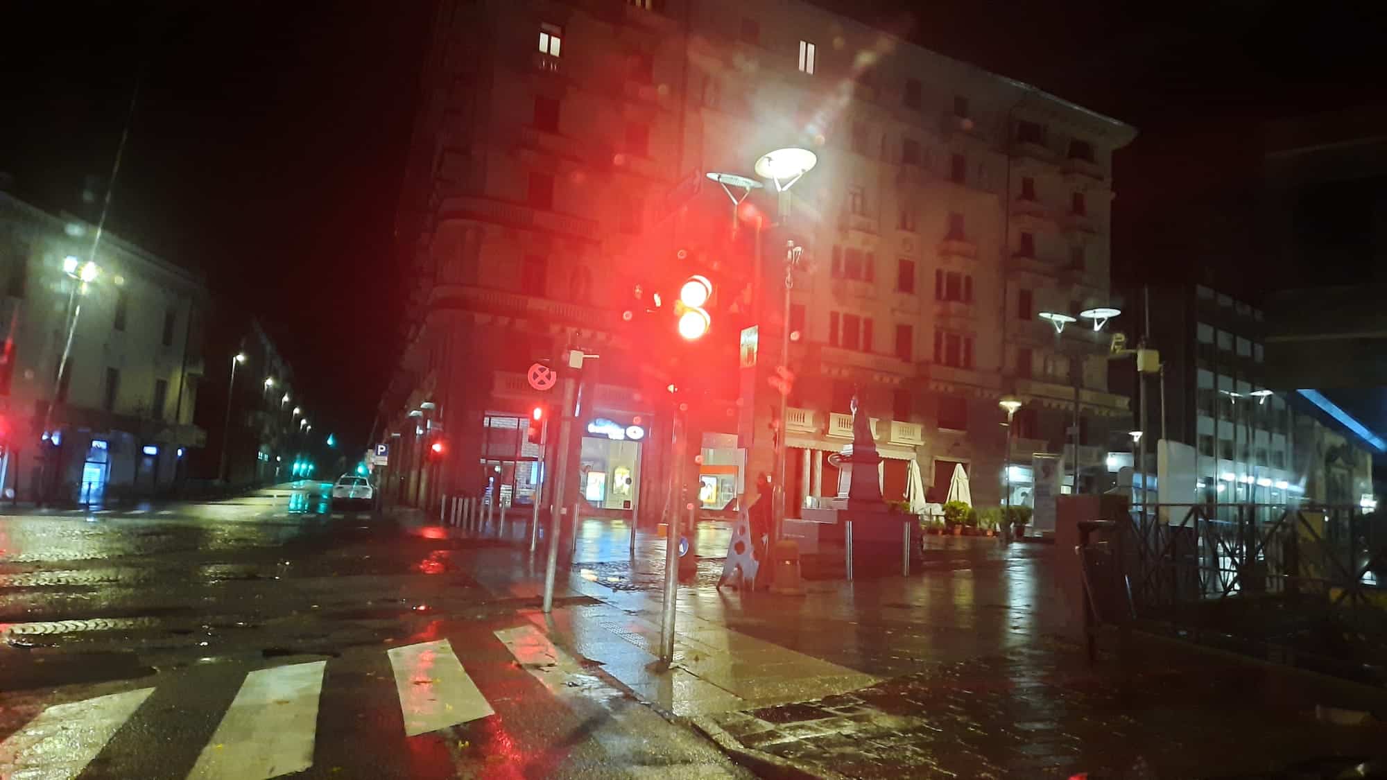 È stata sufficiente una passeggiata in auto lungo le vie limitrofe al centro per confermare quello che già si sapeva: che la prima serata di coprifuoco, quella di lunedì 26 ottobre, non avrebbe destabilizzato le abitudini dei novaresi. Complice il lunedì, quando già la maggior parte dei locali osserva la chiusura settimanale, e il maltempo con pioggia e vento forte, in mezz’ora di ricognizione poco dopo le 23 le strade si sono dimostrate deserte di veicoli, di cani e dei loro padroni. Viale Verdi, largo Bellini, piazza Puccini e largo Bellini, la Barriera Albertina, i baluardi, piazza Cavour: il silenzio del lockdown e della responsabilità sono scesi insieme al buio.