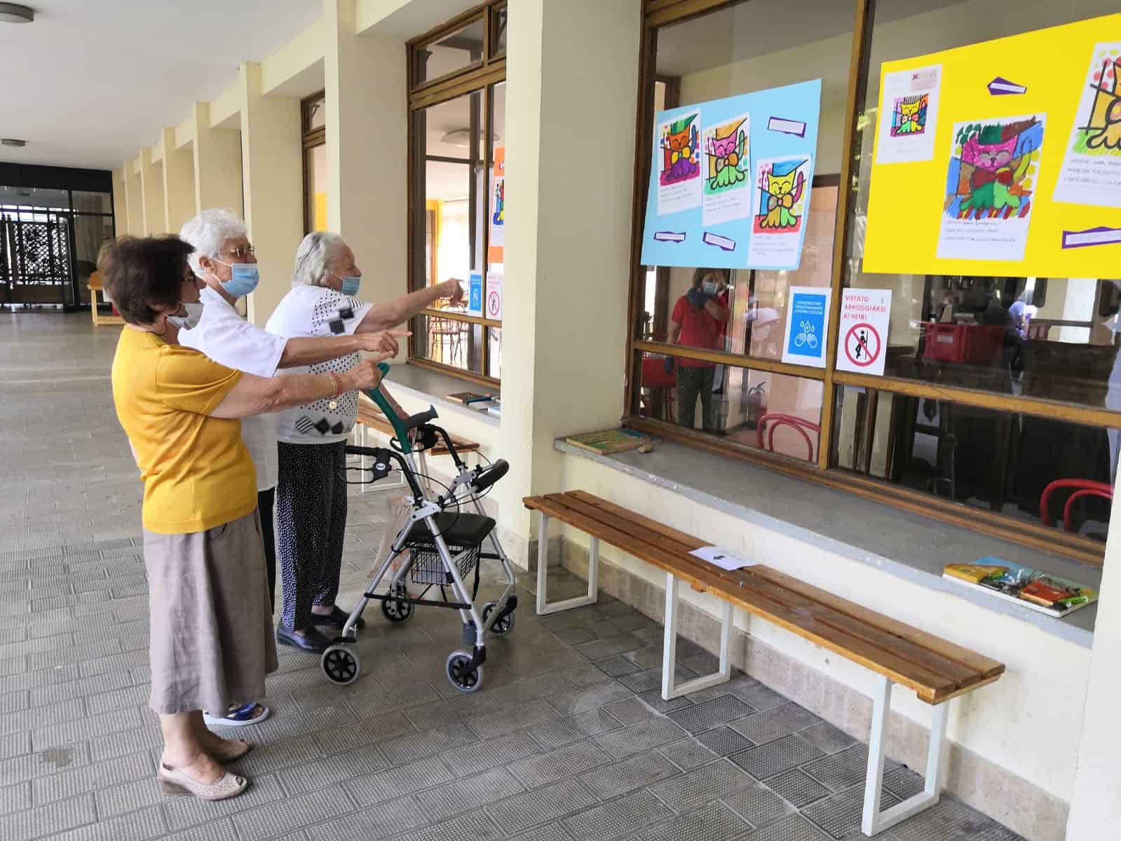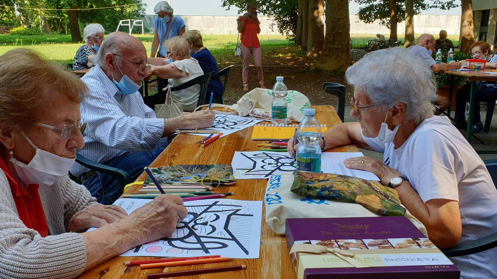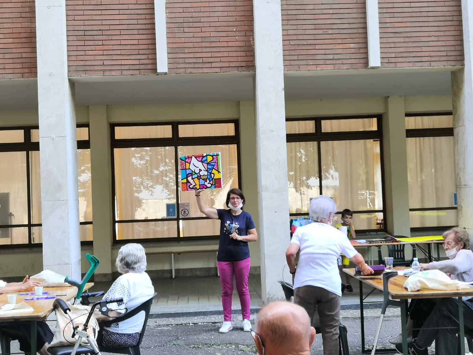 «Le nostre attività continuano a essere organizzate secondo le normative dettate da Asl e Regione – spiega la direttrice, Valentina Piantanida – ma rispetto alle prime settimane le abbiamo un po’ ampliate. Una di queste è il laboratorio d’arte “Imbratto Britto” di Alessia Legat, titolare della galleria Legart, con la quale avevamo già svolto diverse attività. Alessia ha impostato il lavoro ispirandosi alle opere dell’artista contemporaneo Romero Britto preparando un disegno per ogni ospite: oguno l’ha colorato secondo la propria sensibilità utilizzando varie tecniche, dai pennarelli alle tempere o gli acquerelli. I disegni sono poi stati appesi nel porticato del seminario».