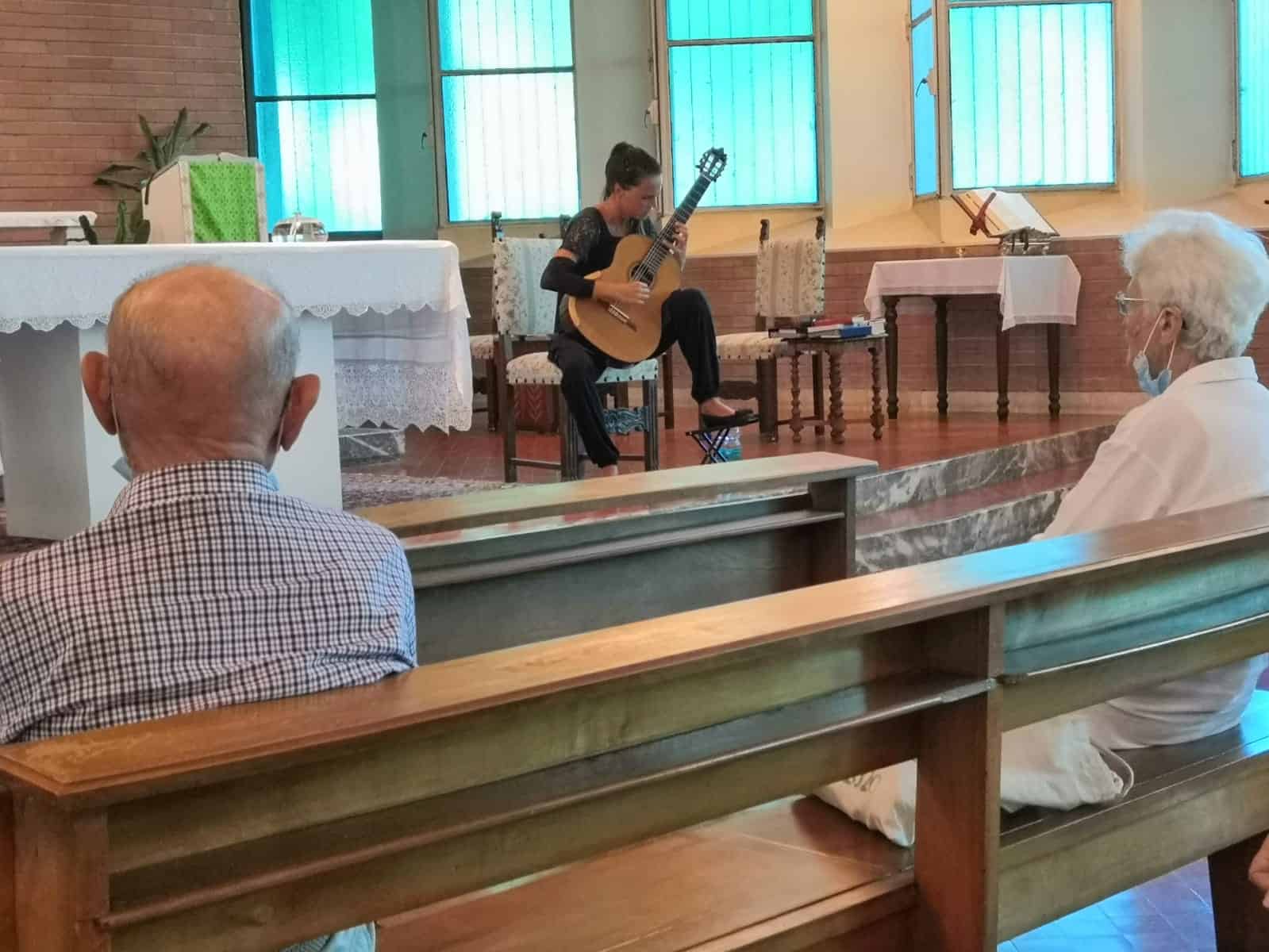 Non solo arte, però, perchè gli ospiti hanno avuto modo assistere al concerto, nella chiesa del seminario, di Giulia Ballarè, giovane chitarrista novarese nipote di due tra gli ospiti della Casa di giorni, Nereide e Luigi.