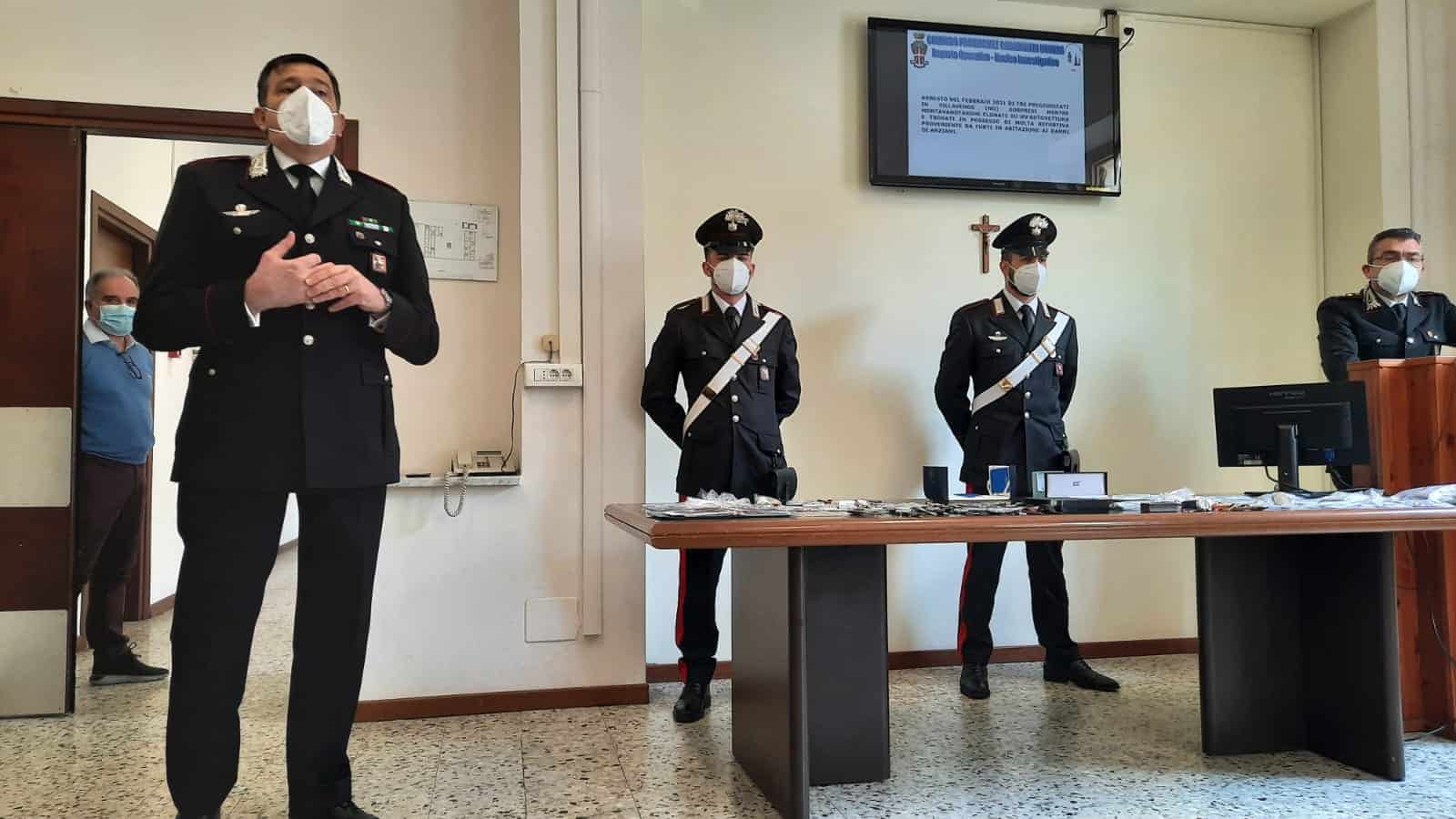 «Un reato odioso, commesso nei confronti della categoria che più ha sofferto durante l’emergenza Covid – ha commentato il comandante, il colonnello Antonio Renzetti -. Per questo motivo, quando la pandemia sarà rientrata, ricominceremo a incontrare gli anziani nei loro abituali luoghi di ritrovo, le parrocchie ad esempio, per educarli e metterli in guardia dai pericoli. Questi malviventi, che si travestono da tecnici o da agenti delle forze dell’ordine, si presentano con un atteggiamento calmo e rassicurante che ingannerebbe chiunque di noi. Il messaggio è tenere le antenne dritte».