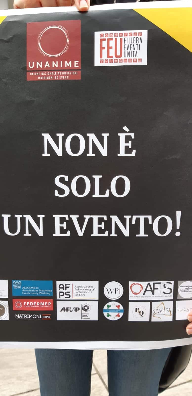 L’anno nero di eventi e cerimonie: flash mob in piazza. Questa mattina, lunedì 26 aprile, gli operatori del settore cerimonie ed eventi privati e aziendali sono scesi in piazza (undici capoluoghi di regione tra cui anche Torino e Milano) per protestare contro la mancanza di indicazioni da parte del governo per la ripartenza delle attività del comparto.