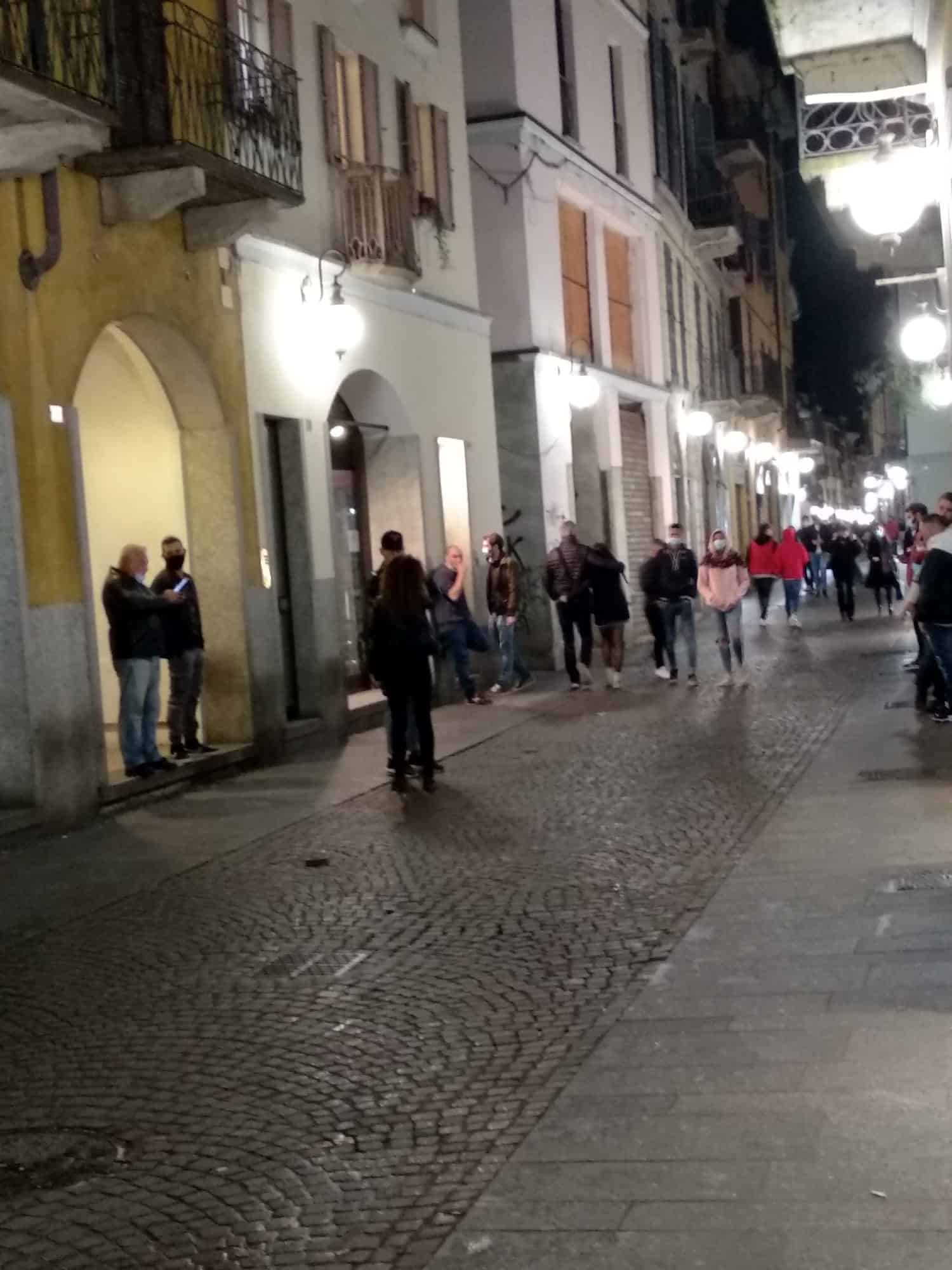 I meno attenti sono stati i gruppi di ragazzi che passeggiavano senza mascherina: gruppetti di 4/6 giovani a stretto contatto tra loro. Nella serata di ieri la situazione di maggiore criticità si è venuta a creare sotto i portici di via XX Settembre all’incrocio con viale Dante: come viene mostrato nel video, era presente un consistente numero di ragazzi, ammassati e senza dispositivi di protezione. A un certo punto è anche nato un battibecco tra due gruppi, ma senza che ciò degenerasse in una rissa.