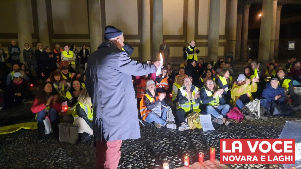 Nella serata di ieri, 21 ottobre, i No pass si sono ritrovati ancora una volta in piazza (questa volta è toccato a piazza Duomo) per manifestare la propria solidarietà ai portuali di Trieste. Un’ottantina di persone con giubotto giallo e arancione hanno “apparecchiato” la piazza con ombrelli, lumini e cartelli “Novara chiama, Trieste risponde”.