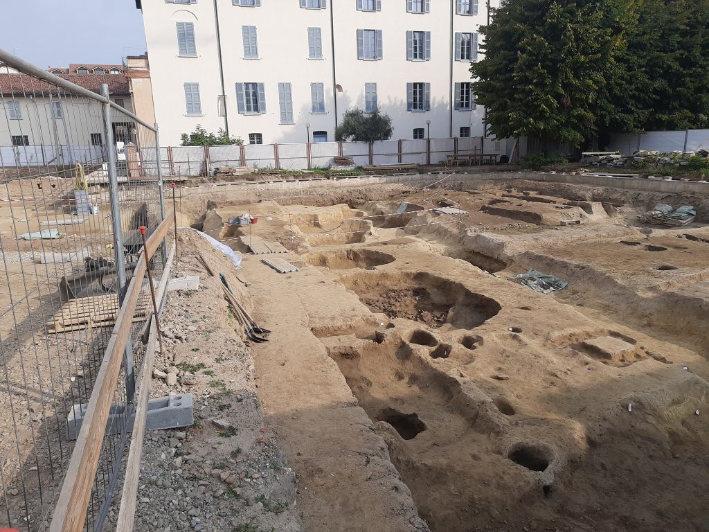 Come era emerso nella prima visita dello scorso luglio al cantiere, nella prima fase erano stati individuati i resti di un quartiere abbattuto a metà del Trecento per la costruzione del castello visconteo, con i resti della fornace utilizzata per l’opera e un grande muro con porticato che delimitava i giardini del vescovado; in questa seconda fase, come allora preannunciato, gli archeologi hanno raggiunto gli strati medioevali e romani.