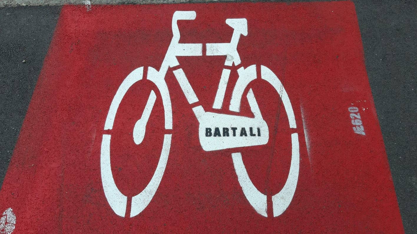 Via Galilei diventa il red carpet dei ciclisti famosi. Ma è mistero sull’autore. Dopo aver fatto parlare di sè per oltre un anno in seguito ai lavori che ne hanno completamente modificato l’aspetto e creato non pochi problemi alla viabilità, via Galilei torna d’attualità. Nei giorni scorsi, infatti, lungo la pista ciclabile – in entrambi i sensi di marcia – sono comparse trenta scritte, una per ogni bicicletta dipinta sull’asfalto, con i nomi di altrettanti atleti campioni che hanno fatto la storia del ciclismo. Ci sono tutti: dai più “antichi” quali Binda o Guerra, agli intramontabili Coppi, Bartali, Pantani fino ai più recenti e attuali come Bugno, Nibali e Sagan.