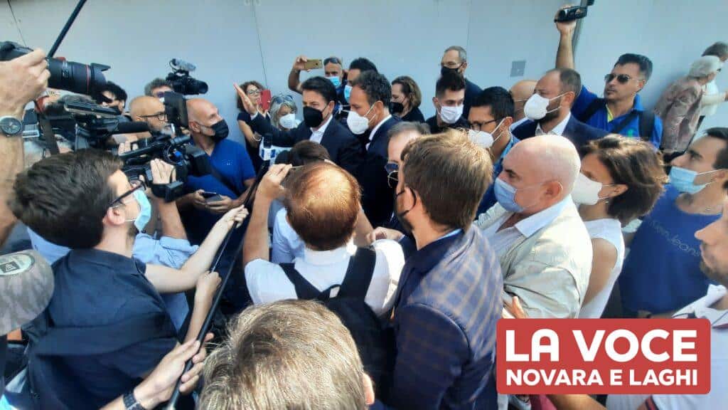 Bagno di folla novarese per Giuseppe Conte. L’ex presidente del Consiglio, oggi leader del Movimento 5 Stelle, nel suo tour piemontese a sostegno del candidato sindaco Mario iacopino alle amministrative del 3 e 4 ottobre, questa mattina, 11 settembre, non ha voluto mancare all’appuntamento con la seconda città della regione. Anzi, in arrivo da Bologna, ha inserito all’ultimo momento un passaggio anche a Trecate, il centro della provincia più importante chiamato al voto dopo il capoluogo. Una variazione in corso d’opera che ha comportato un ritardo di oltre un’ora sulla tabella di maracia. Giunto all’ombra della Cupola accompagnato dallo stato maggiore del suo partito (la ministra Dadone, l’ex Azzolina, e poi ancora parlamentari fra cui novarese Crippa e consiglieri regionali), Conte non ha rifiutato il contatto con militanti e simpatizzanti dispensando selfie a volontà.