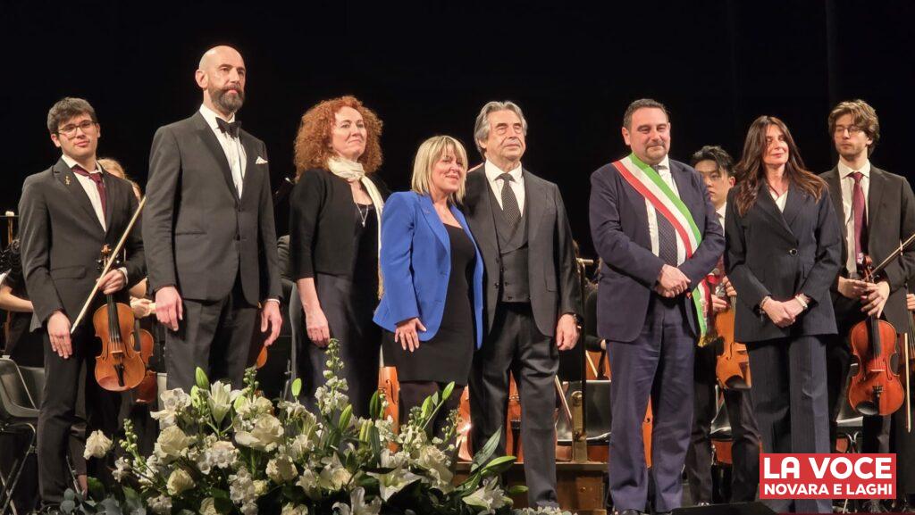 Il momento istituzionale è arrivato nel finale. L’assessora regionale alla Cultura Marina Chiarelli ha consegnato al maestro una targa della Regione Piemonte. Subito dopo il sindaco Alessandro Canelli gli ha conferito la cittadinanza onoraria di Novara, ricordando il legame storico con la città e il valore del suo rigore professionale.