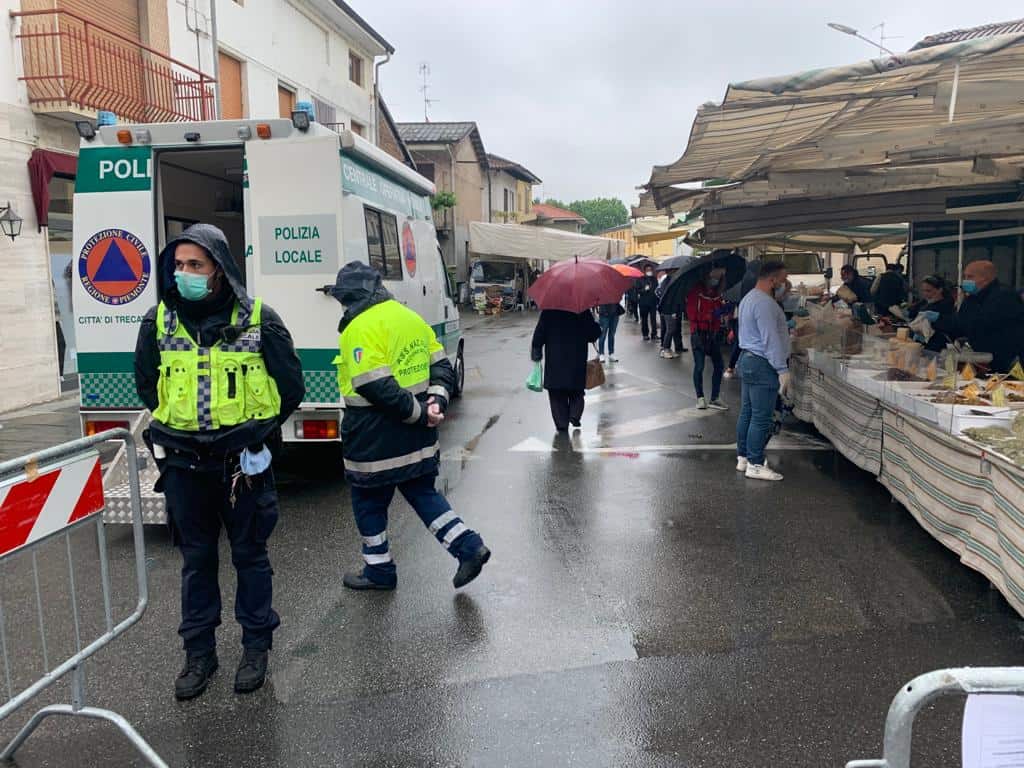 Solo alimentari e banchi soltanto in via Verdi, quella principale. Ha ripreso il via il mercato del mercoledì a Trecate, rimasto fermo per tutte le settimane di lockdown. Frutta e verdura, pasta fresca, salumeria, macelleria, spezie, pollo arrosto, i trecatesi oggi, mercoledì 13 maggio hanno potuto ritrovare i loro banchi alimentari. Ingresso e uscita controllata all’incrocio fra via Battisti e via Mazzini con la presenza del mezzo acquistato dall’amministrazione.