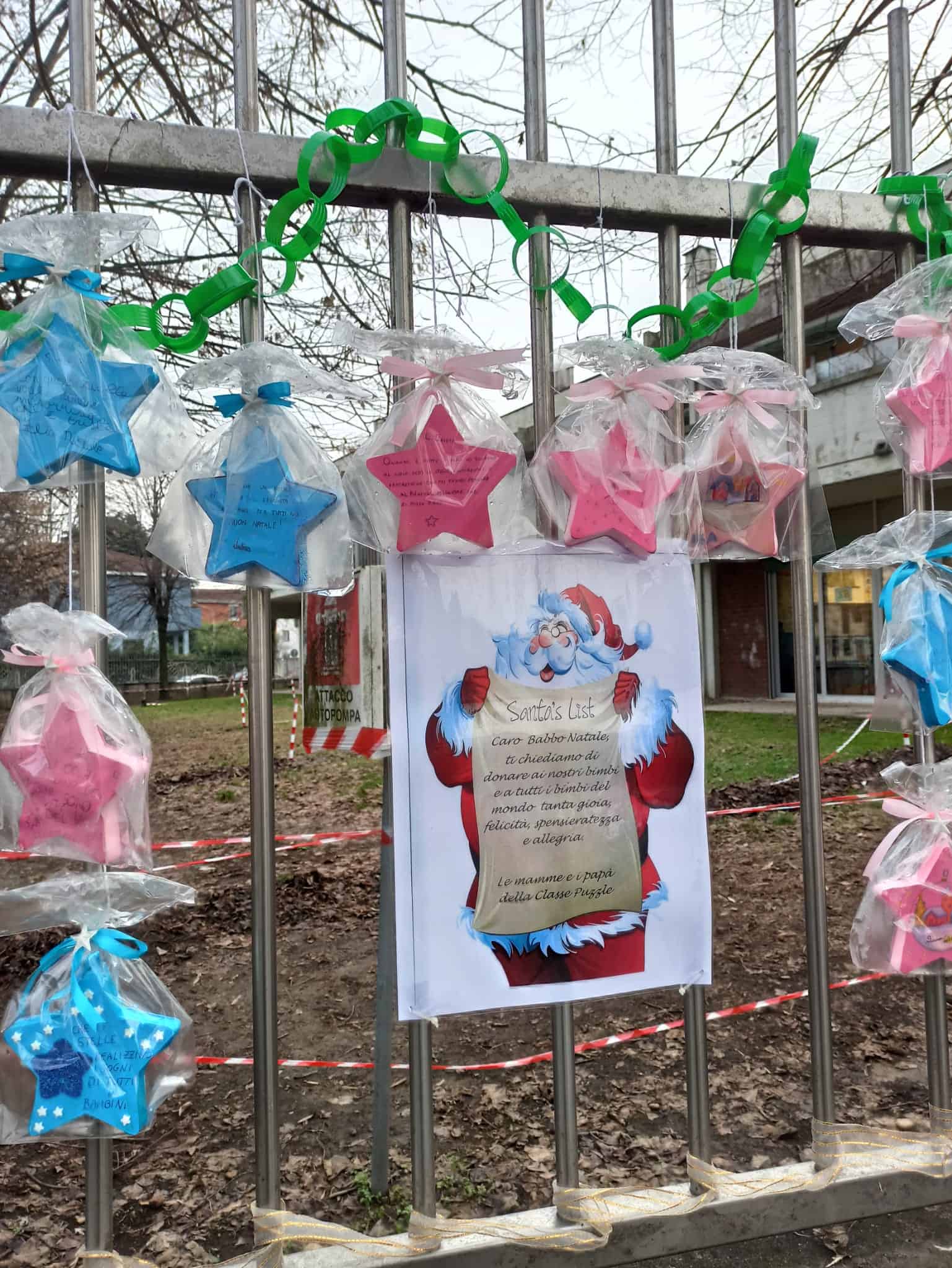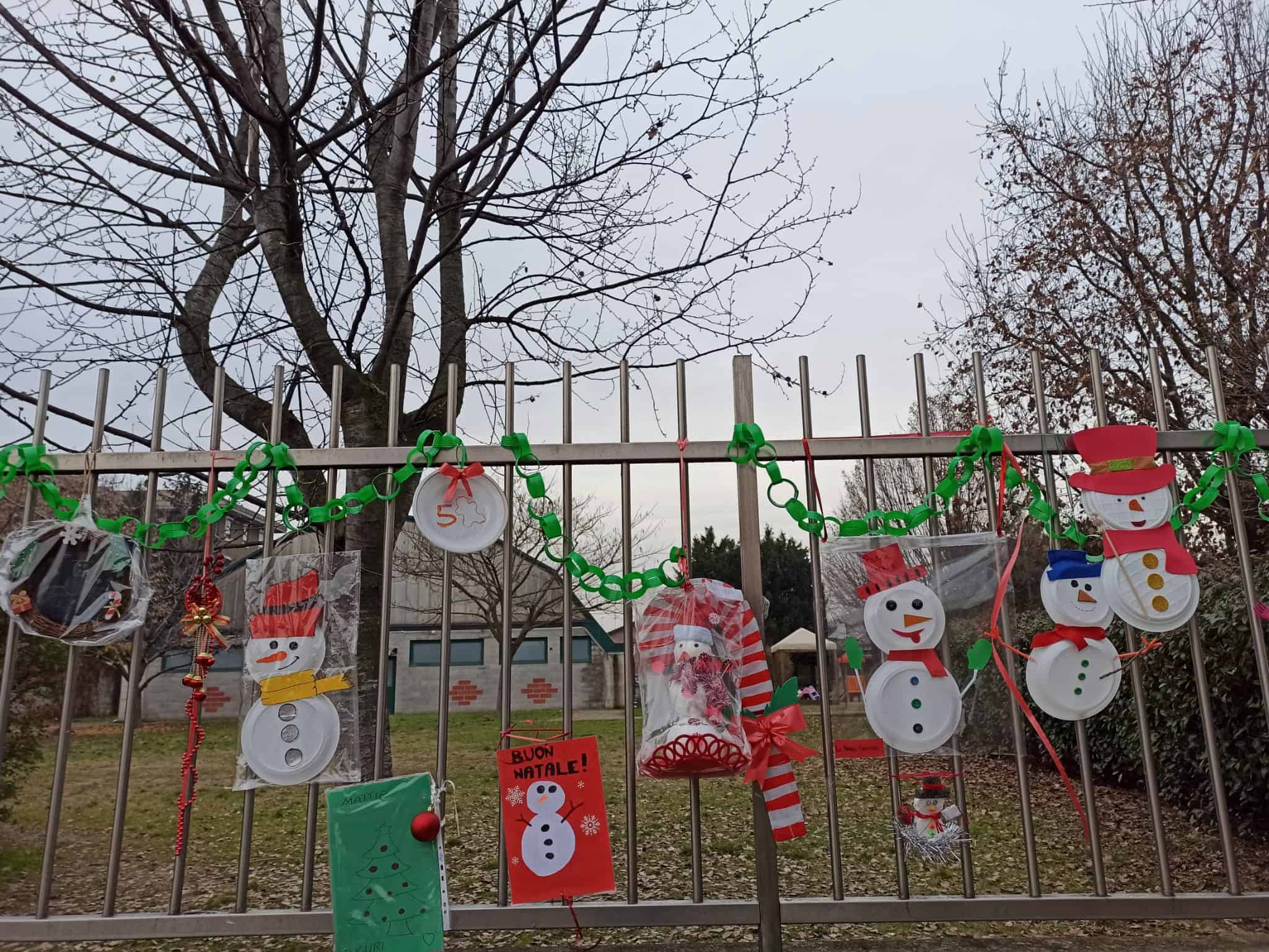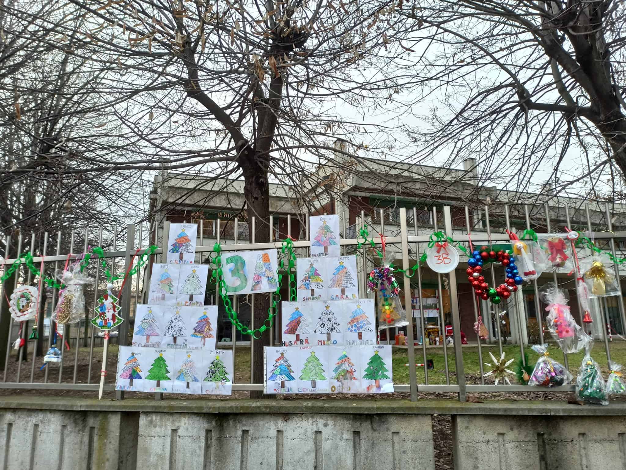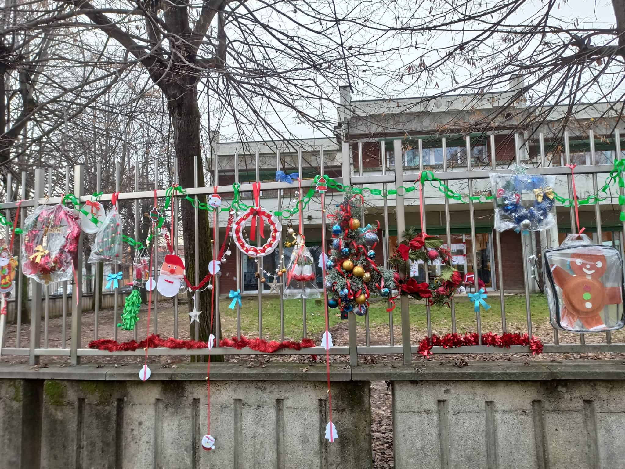 Solitamente nel mese natalizio erano tante le attività proposte per i bambini e anche per raccogliere qualche fondo proprio le scuole. Dal momento che la situazione sanitaria non lo consente, i genitori hanno pensato a qualcosa di diverso: invitare tutte le classi ad addobbare la cancellata della scuola con un lavoretto. Assoluta carta bianca, via libera alla fantasia dei bambini, a scuola o a casa con i famigliari.