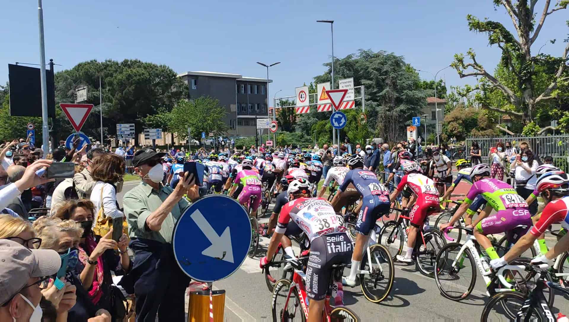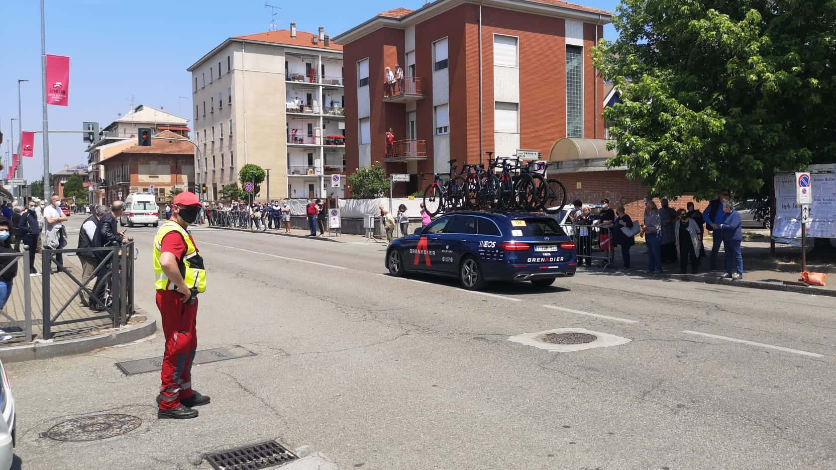 Gente (decisamente più fortunata) sui balconi e tante altre persone lungo i marciapiedi, impegnata a contendersi – ma senza troppo discutere – i pochi centimetri quadrati lasciati da qualche ombra. Forse in un altro momento ce ne sarebbero potute essere di più, ma si può essere soddisfatti in ogni caso. Novara ha accolto così, oggi poco dopo le 13, il nuovo passaggio del Giro d’Italia che a Novara era aveva già fatto tappa lo scorso 9 maggio.